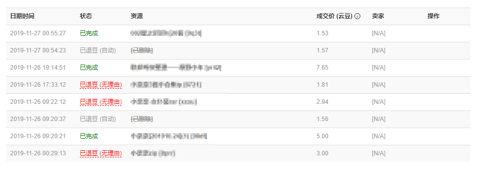회색 글씨의 已退豆 (自动) 는 링크가 폭파되어 자동으로 환불이 된 것이고, 빨간 글씨의 已退豆 (无理由) 는 제가 클레임을 넣어서 환불하게 된 자료들입니다. 비번이 있어서 환불신청을 한건데, 이상하게 이유 없이(无理由) 환불되었다고 나오네요 ㅡㅡ...