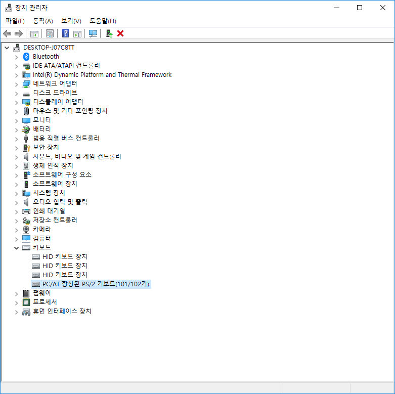 키보드 탭을 열어 PC/AT 향상된 PS/2 키보드를 찾아주세요.