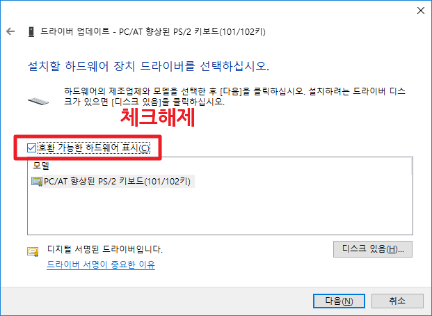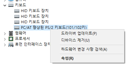 PC/AT 향상된 PS/2 키보드를 찾으셨으면 이를 우클릭 하셔서