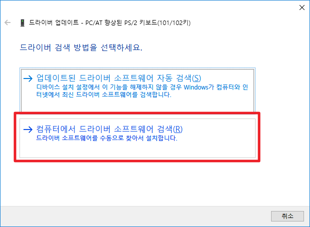 "컴퓨터에서 드라이버 소프트웨어 검색"을 눌러주세요.