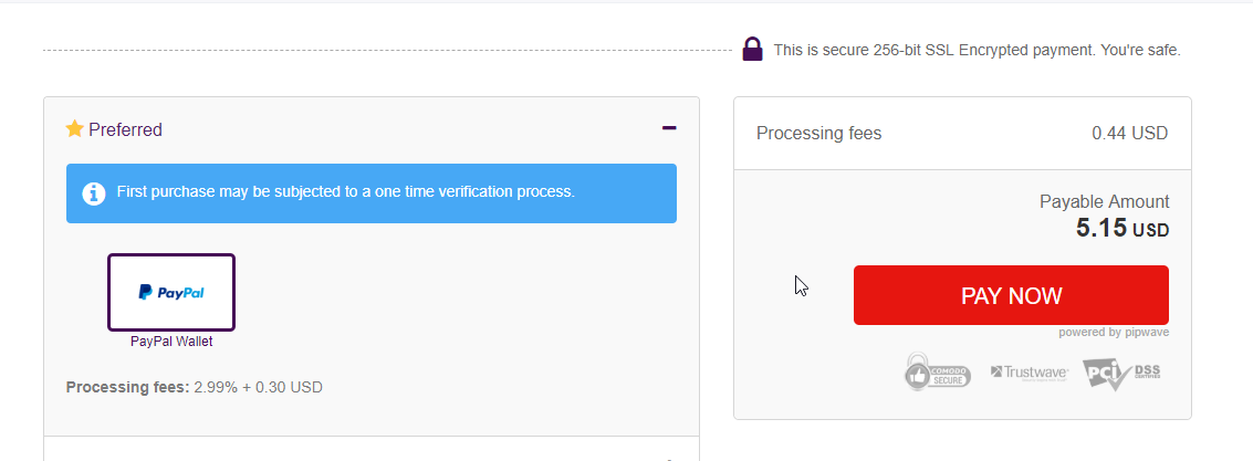 수수료 2.99% 와 0.3 USD가 더붙어서 5.15달러가 최종 금액이네요.