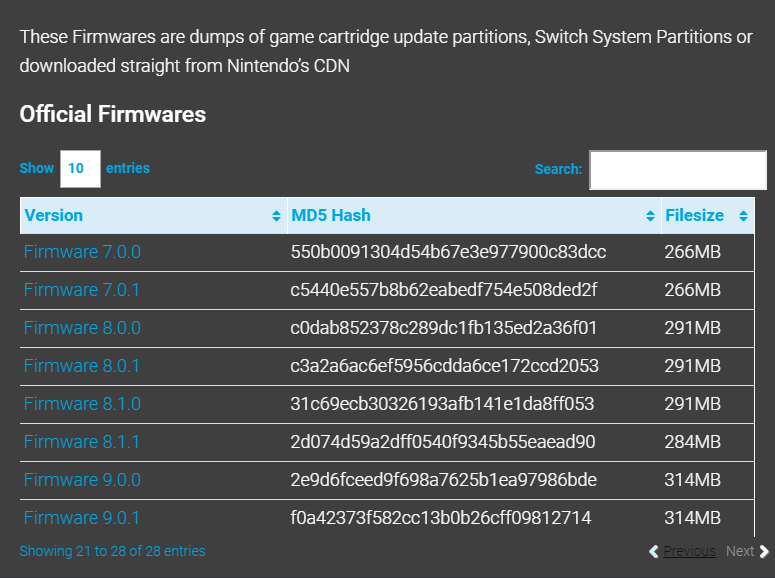These Firmwares are dumps of game cartridge update partitions, Switch System Partitions or downloaded straight from Nintendo’s CDN Official Firmwares
