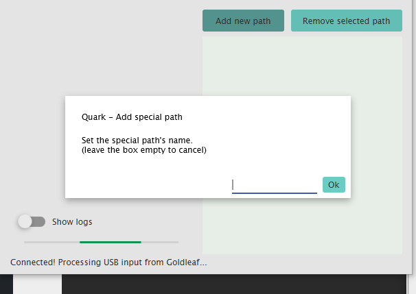 Quark의 실행 모습은 다음과 같습니다. 여기서 Add new path를 누르고 nsp 설치파일이 있는 경로를 폴더째로 선택해 줍니다.