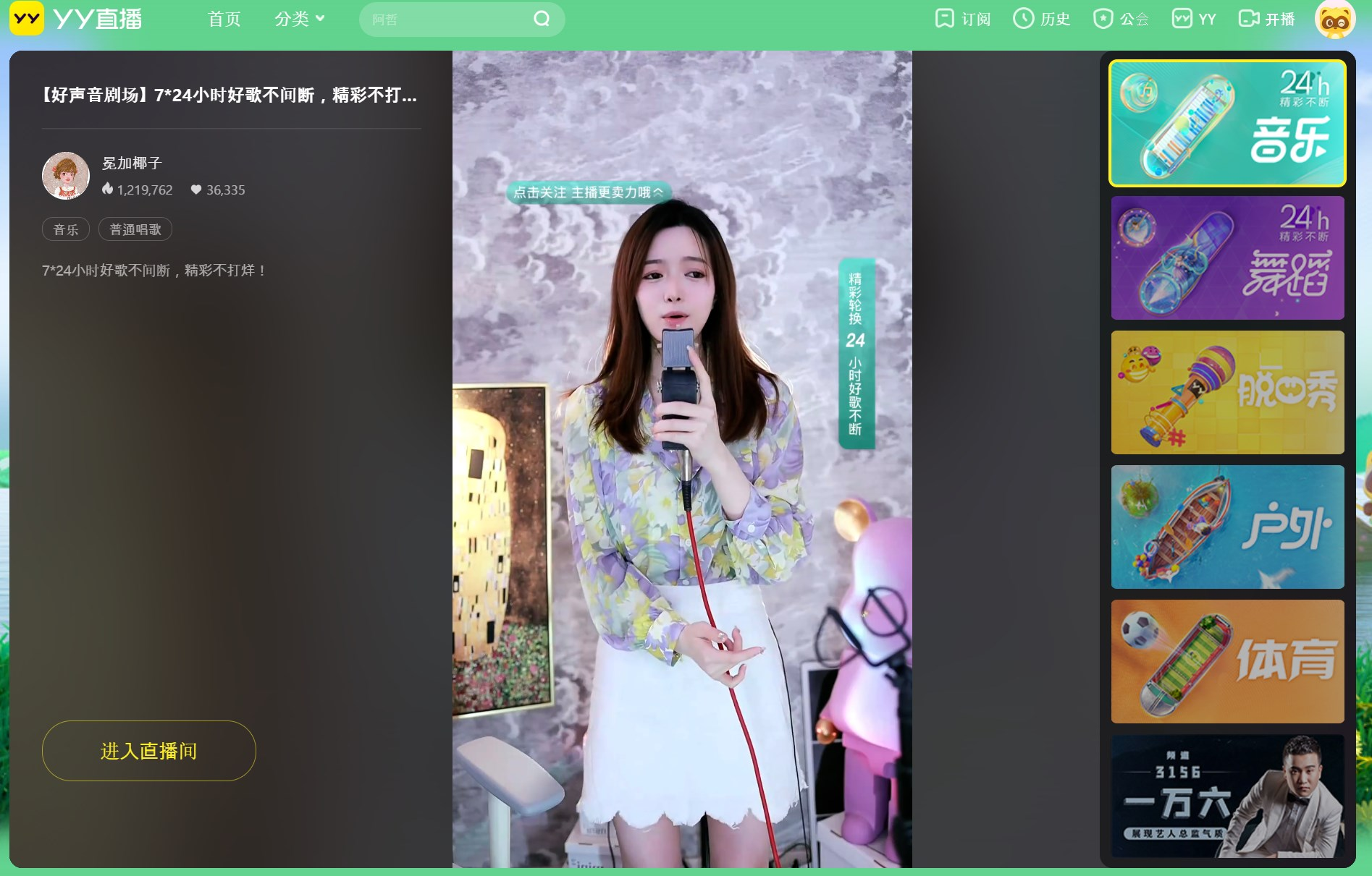 먼저, YY 방송 프로그램을 켜게 되면 위와 같은 화면이 나올겁니다. 좌측의 娱乐直播(방송시작) 버튼을 눌러줍니다.